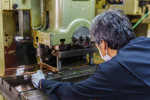 We have been working with copper and brass for 80 years in Kyoto, a long-established copper and brass manufacturer. Matsuura Corporation manufactures metal lanterns, decorative hardware for temples, shrines and shrines, and fittings for portable shrines, using the handcrafted skills of craftsmen and the machining technology of engraving patterns by machine, freely handling non-ferrous metals such as copper and brass.