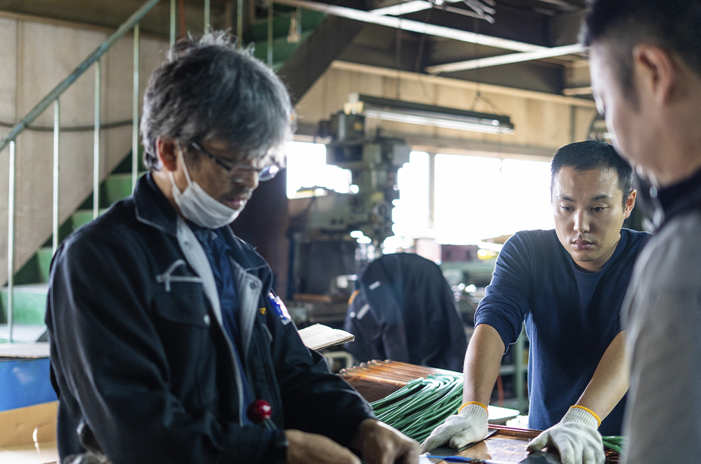 We cross the good points of craftsmen and machines, adjusting what only craftsmen can do and what machines can do, and using the network we have cultivated in Kyoto, we deliver products that satisfy our customers.